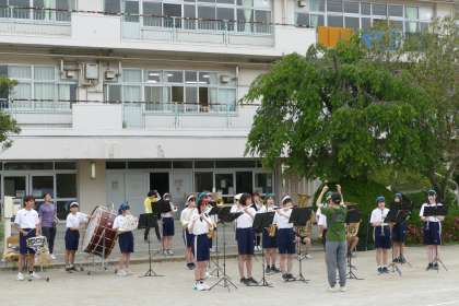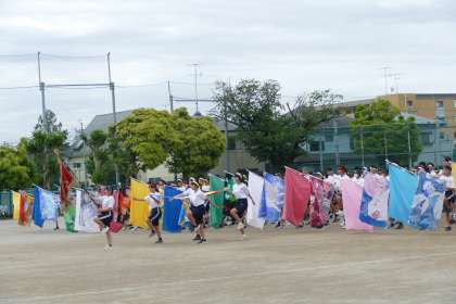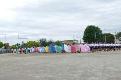 吹奏楽部の「宇宙戦艦ヤマト」の演奏で全校生徒が入場します。