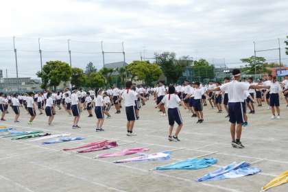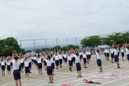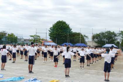 実行委員の皆さんが前に出て、しっかりとラジオ体操をしています。