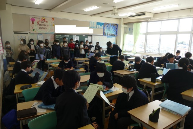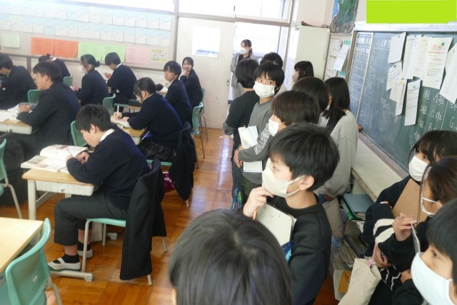 12月12日(木)10時40分に忠生小学校の6年生のみなさんが、忠生中学校の授業見学に来ました。