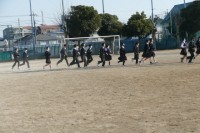 校舎内で火災が発生した想定で、集団で校庭へ避難する訓練です。