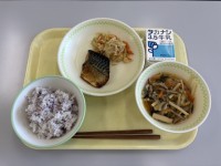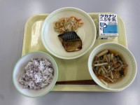 今日の給食のメニューは、ゆかりごはん、牛乳、さばの照り焼き、キャベツともやしのご...