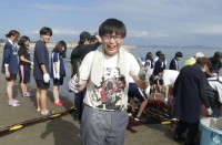 10月10日(金)午後2時30分から三和漁港で地引網体験をしました。生徒のみなさんは、二つのグループに分かれて、協力して地引網を引っ張りました。たくさんのお魚が獲れて、生徒のみなさんは大喜びです。地引...