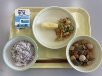 今日の給食のメニューは、ごはん、牛乳、さばのごまみそだれ、町田産キャベツののり和え、むらくも汁です。さばのごまみそだれがとても美味しかったです。ご馳走さまでした。