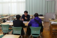 12月2日(火)放課後の三者面談の様子です。学級担任の先生と生徒、保護者で2学期の学校生活や学習状況について情報を共有して話し合っています。3年生は進路決定についても話し合っています。