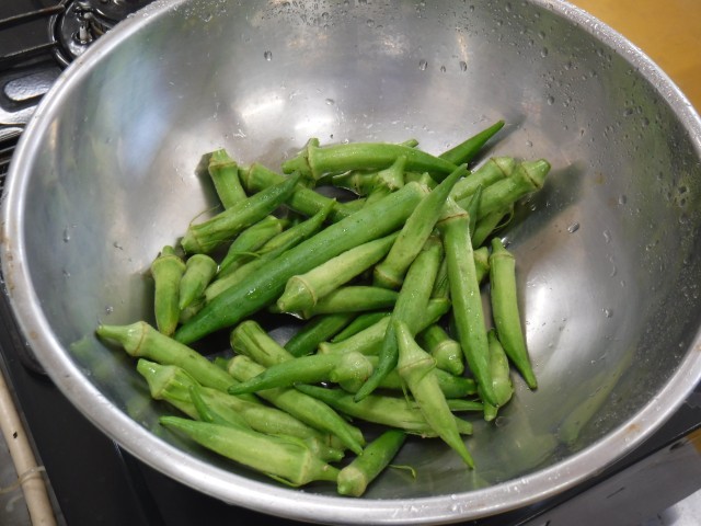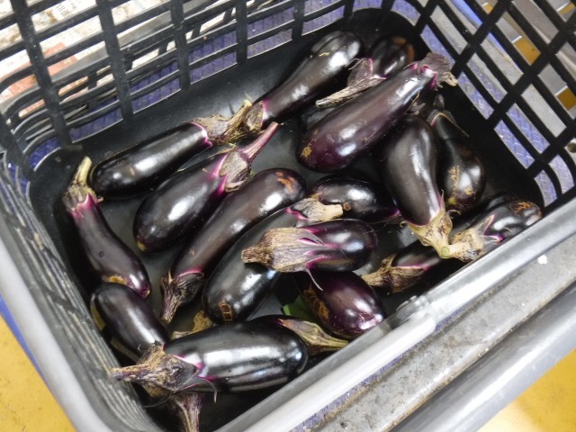 写真は、今朝採れたナスとオクラです♪