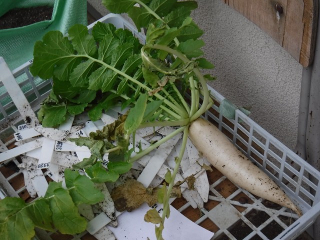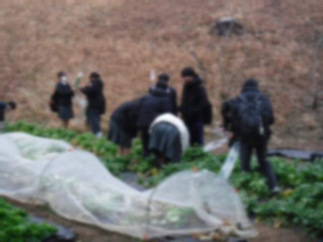 生徒たちは土から顔を出す大根に一喜一憂し、