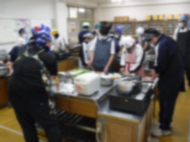 今日は8組で調理実習を行い、