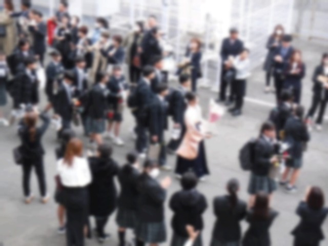 式序盤から涙を浮かべる生徒の姿が見られるなど、