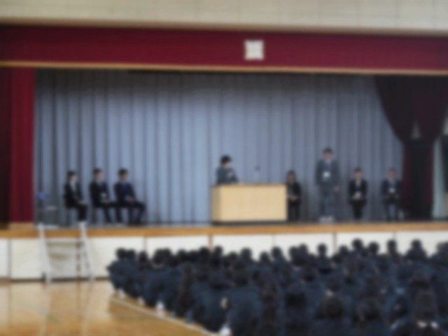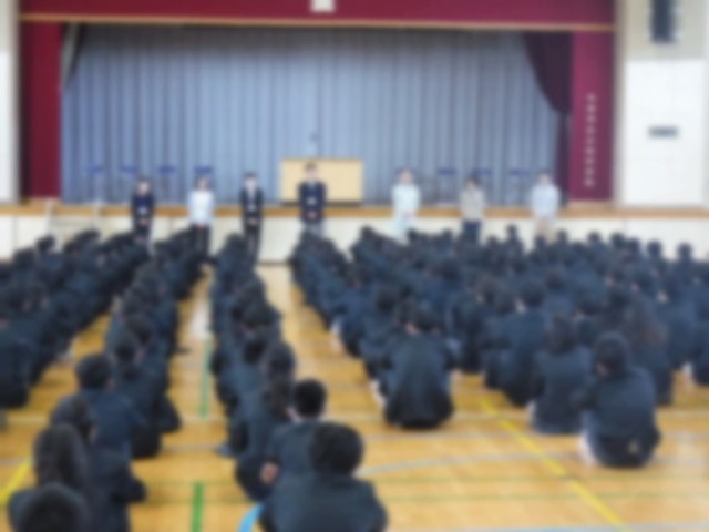 着任式で新任の先生を歓迎
