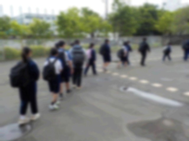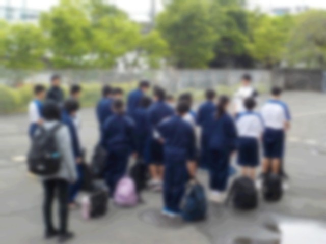 雨上がりの空の下、8組の校外学習がスタートしました。