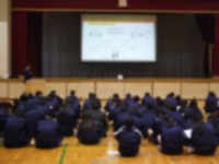 爽やかな朝です。一年生の移動教室は3日目を迎えました。8組のみんなは8時に宿舎を出発、中里地区でジャム作り体験です。
