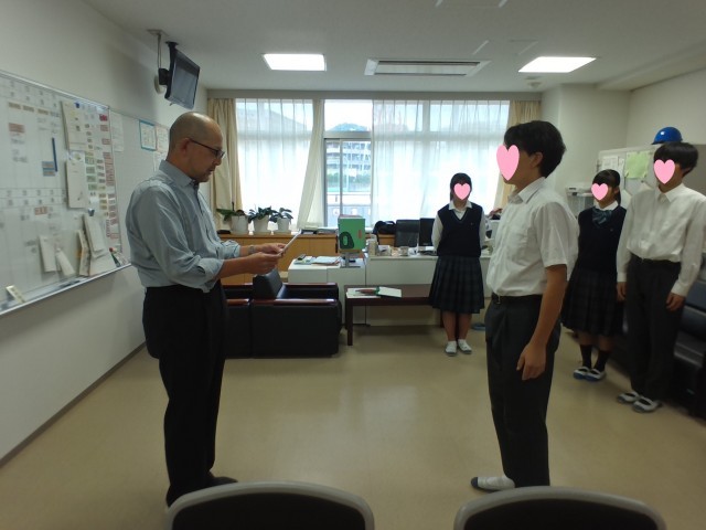 10月15日(水)生徒会本部役員&専門委員会委員長への委嘱式