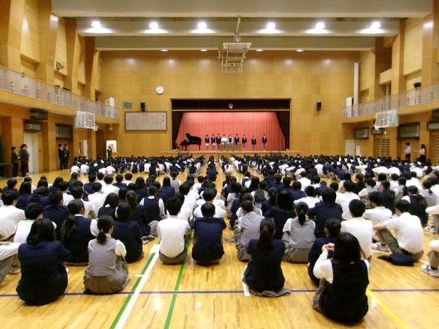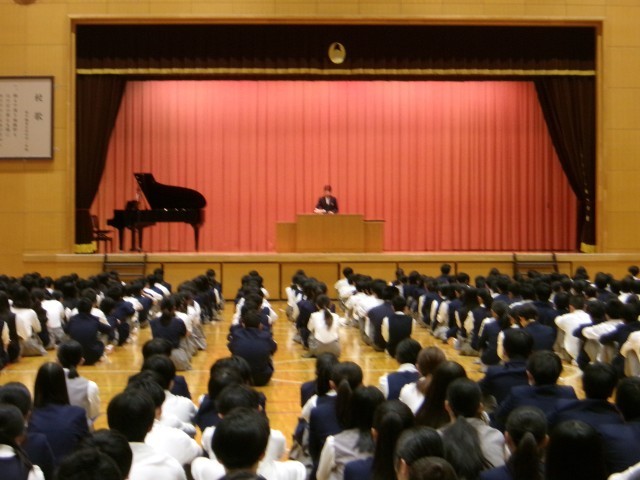 先日の生徒会役員選挙にて決定した新生徒会による生徒会朝礼がありました。