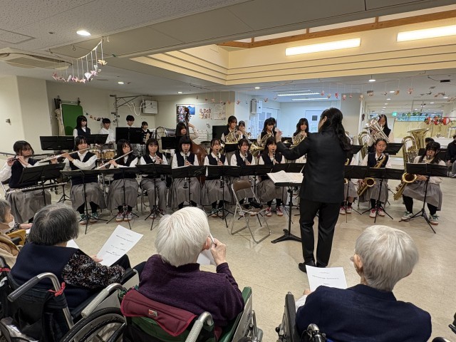 「栄光をたたえて」「楽器紹介」「アニメ・メドレー 久石譲作品集」「演歌メドレー」、アンコールで「RPG」を演奏させていただきました。「涙が出るわ~。」というお言葉やたくさんの拍手をいただき、部員一同励みになりました。