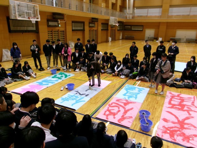 「あなたの夢をつかみなさい」との書に、生徒から感嘆の声が漏れていました。