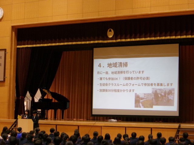 はじめに生徒会本部から、今まで行ってきた生徒会の活動の紹介がありました。
