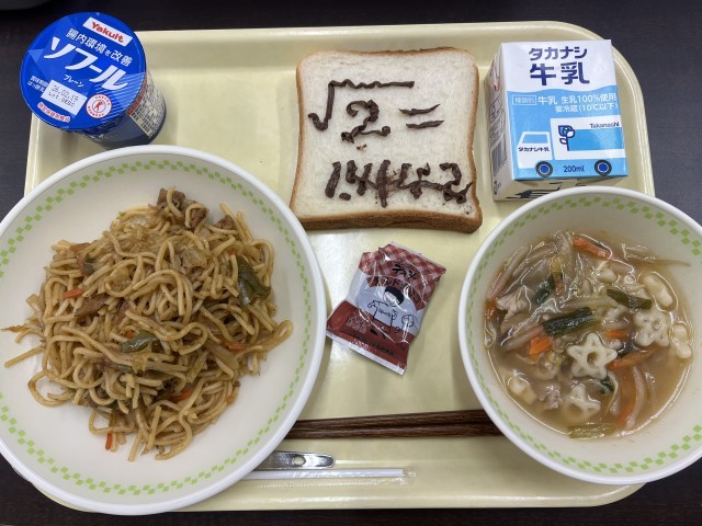 1回目となるリクエスト献立は、「しんちゃんのB級ソース焼きそば」(クレヨンしんちゃん)、「ひみつ道具の暗記パン」(ドラえもん)でした。