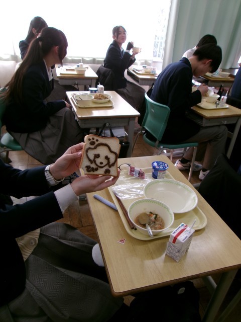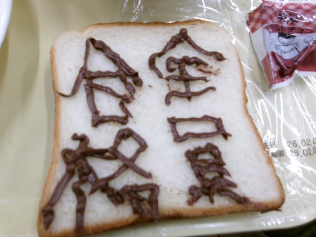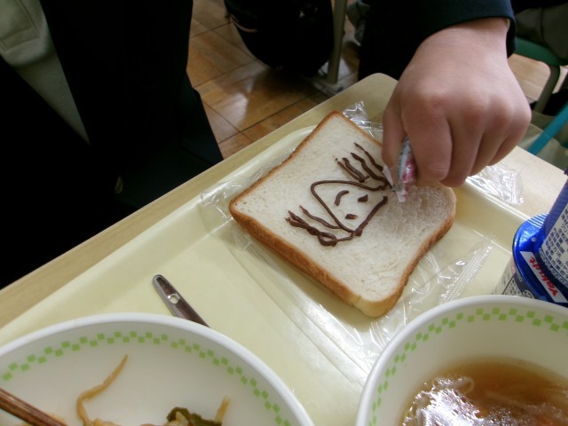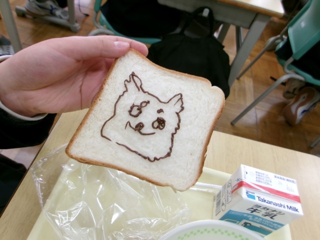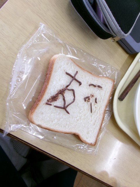 暗記パンは、食パンにチョコソースで覚えたいことを自由に書けるようになっており、覚えたいこと以外にも自由にイラストを描く様子もありました。