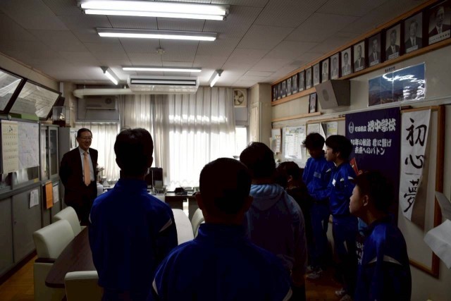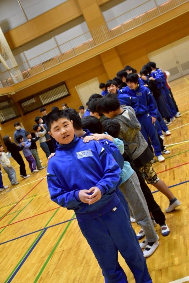 その後、合同レクとしてじゃんけん列車をしたのち、校舎見学を行いました。また、3年生は中学校生活の思い出と、今後の進路の抱負の発表も行いました。