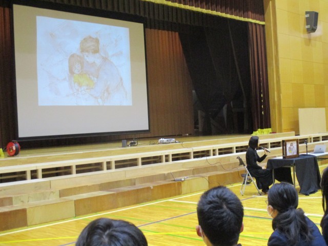 原爆が投下されたとき、爆風でガラスの破片が体に刺さってしまったこと、大八車に死体を乗せて運んでいったことなど、実際体験された話を真剣に聞いていました。