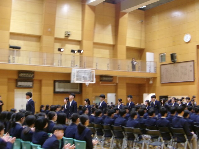 また、3年生から1・2年生へのメッセージと合唱「青い鳥」が贈られました。3年生の合唱に込める強い思いが伝わる歌声でした。1・2年生は3年生の思いを受け継ぎ、卒業式本番で最高の合唱を披露したいですね。